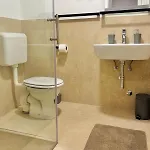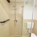 Tot de badkamerfaciliteiten behoren ook een apart toilet en een douche. Een haardroger en badlakens zijn inbegrepen voor extra comfort.